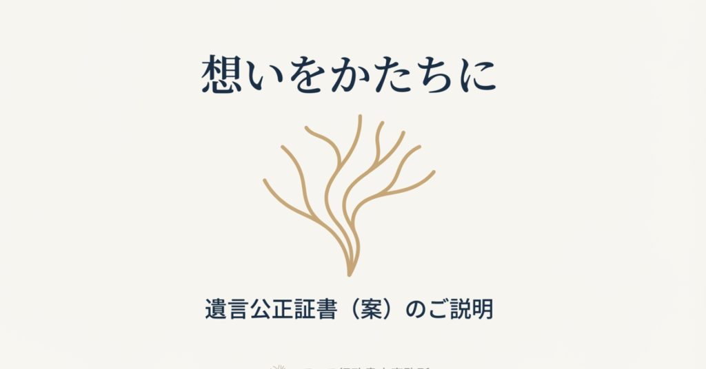 弊事務所では、遺言書(案)のご説明をさせて頂く際、遺言書の内容を図表にした解説書を、お渡ししています。 これまでは、内容の打合せの際、遺言書の案文を見ながら、口頭にて説明をしていましたが、複雑な内容の際は、どうしても口頭だけでは解りにくいと言ったことがありました。 弊事務所では、少しでも解りやすい説明に務めるため、遺言者様別に、遺言者案に加えて、図入りのご説明書を、作成させて頂くことにしましたので、お知らせいたします。